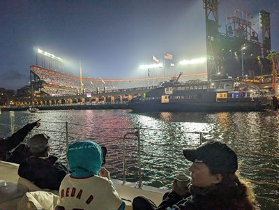 Enjoy San Francisco's city lights as we the approach the stadium and anchor in the renowned McCovey Cove. We count ourselves especially lucky to have such a beautiful and unique basin from which to cheer on our favorite team.